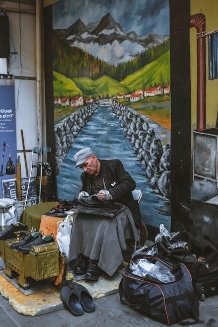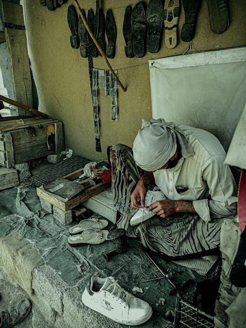 PDF versions vividly depict the shoemaker’s desperate situation, emphasizing his dwindling resources and growing despair. The tale begins with a craftsman facing utter ruin, possessing only enough leather for a single pair of shoes – a stark representation of his poverty.